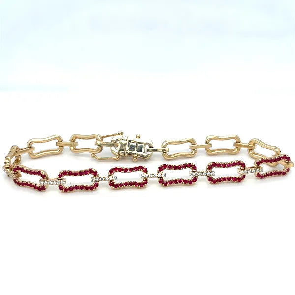 14 Karat Yellow Gold Bracelet with Ruby and Diamonds