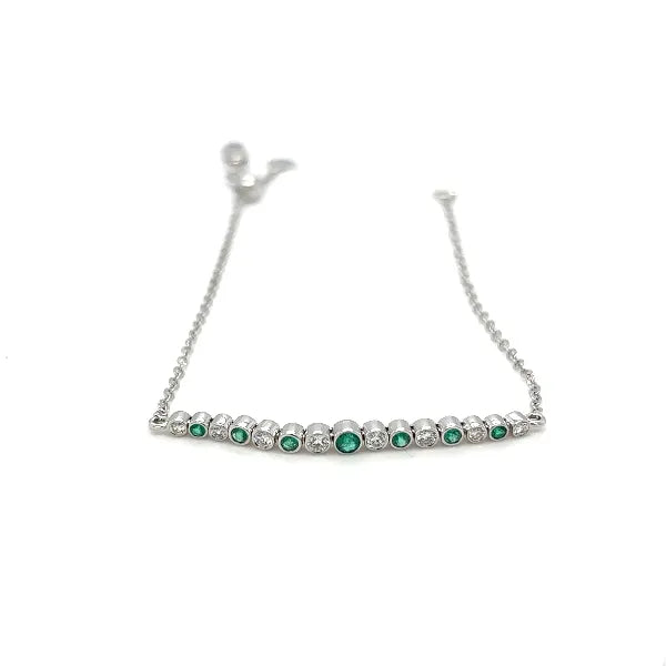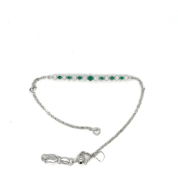 14 Karat White Gold Adjustable Bracelet with Emeralds and Diamonds