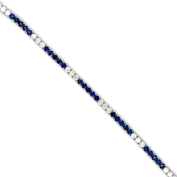 This bracelet is created in 14 karat white gold and is set with 4.50 carats of sapphire and 2.10 carats of diamond.