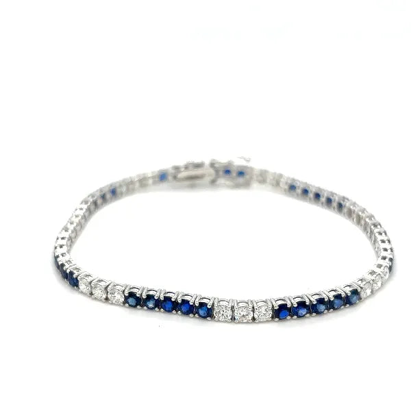 14 Karat White Gold Bracelet with Sapphire and Diamonds