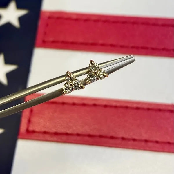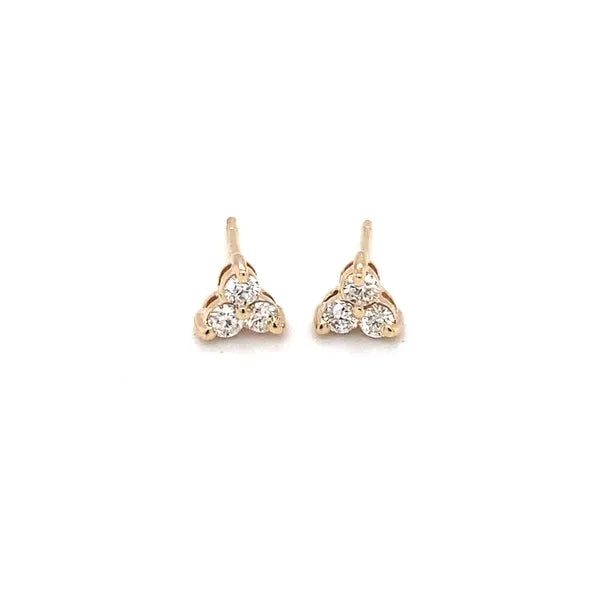 14k Yellow Gold Tri Diamond Stud Earrings