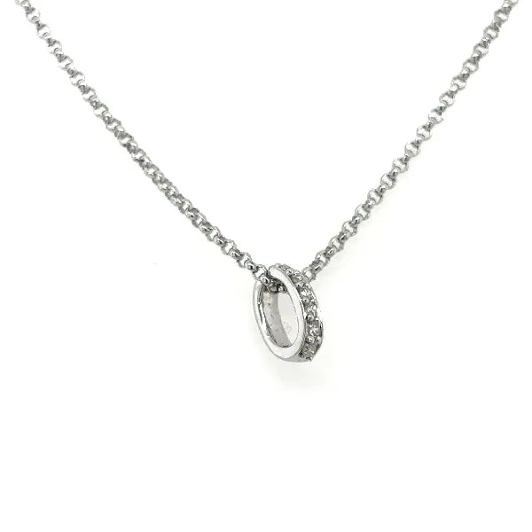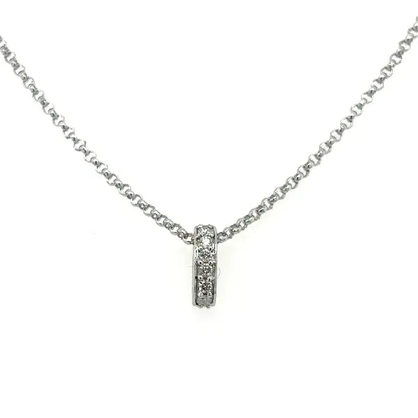 This dainty 14 karat white gold necklace is accent with 0.06 carats of sparkly diamonds. Comes on a 14k white gold 16 inch chain.
