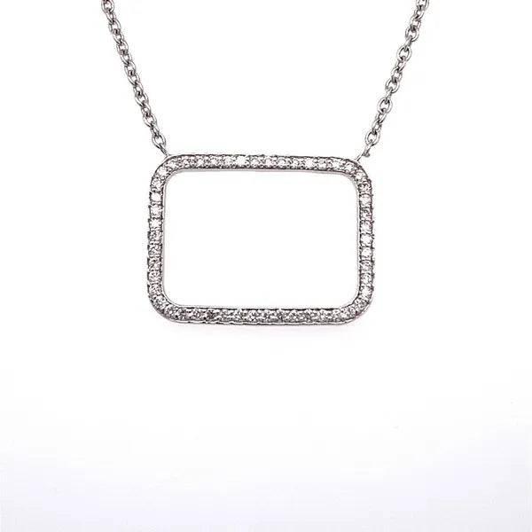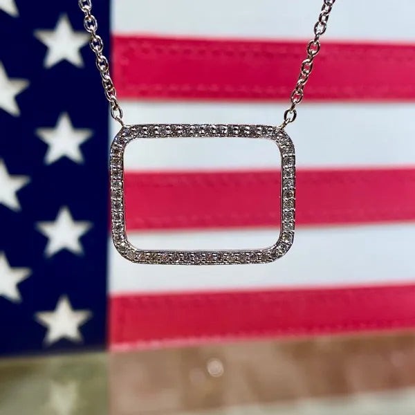 14K White Gold Diamond Rectangle Necklace