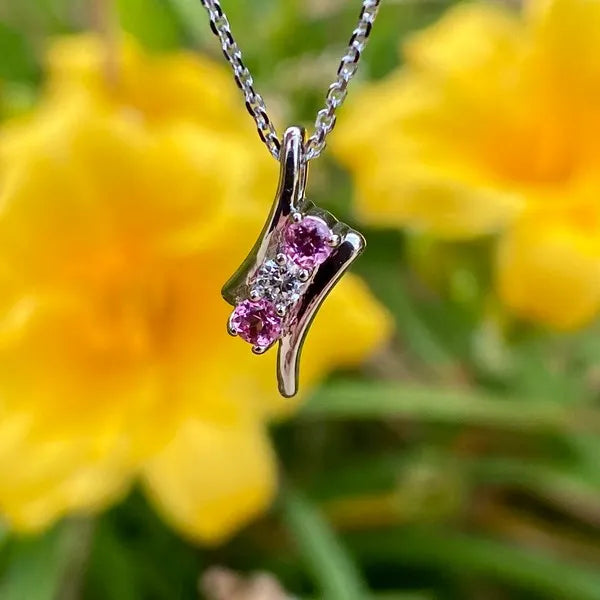 14k White Gold Spinel and Diamond 3 Stone Pendant