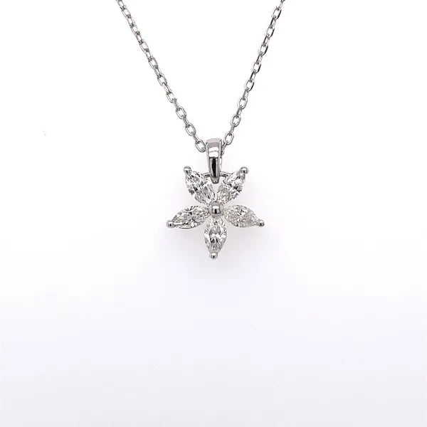 This is an absolutely gorgeous diamond pendant! This necklace features .35 cttw of sparkling marquise diamonds and comes on a 17 inch 14k white gold cable chain.