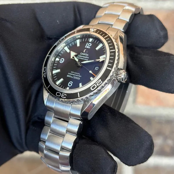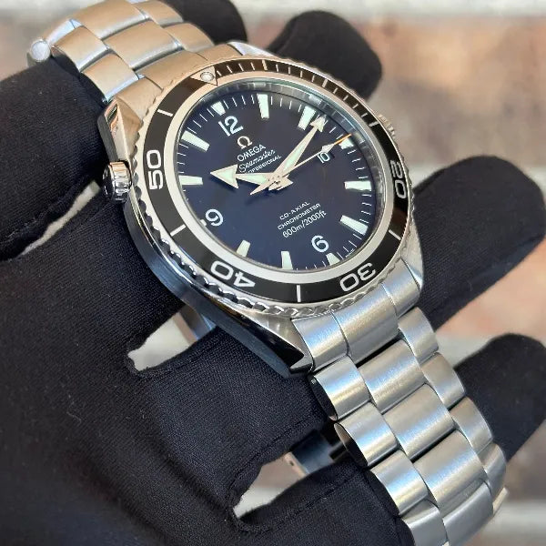 Pre-owned Omega Seamaster Planet Ocean. 45.5mm case size, automatic movement. Style: 2200.50.00. Watch comes on original steel bracelet and includes original box and papers. Watch is in excellent condition.