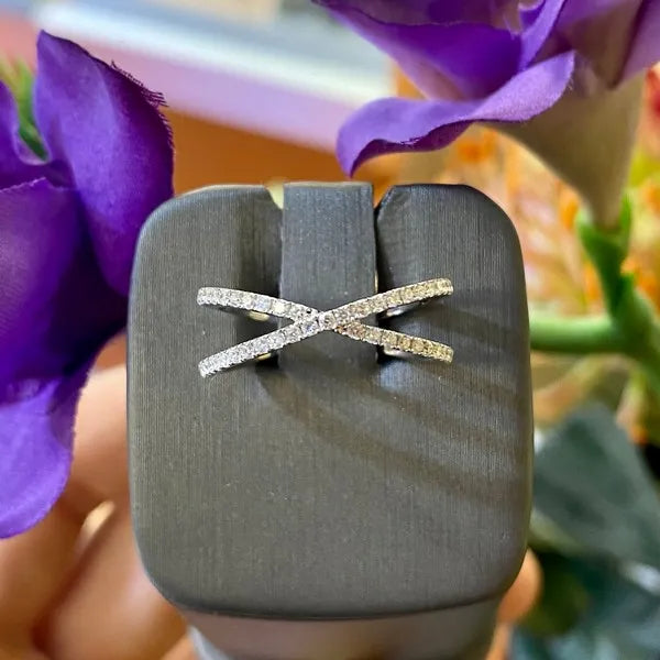 14k White Gold Diamond Crossover Ring