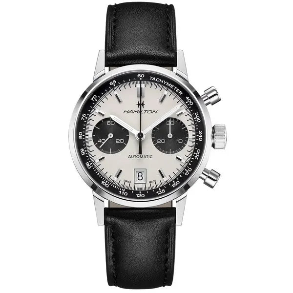 The Hamilton Intra-Matic Auto Chrono is a modern reworking of a 1968 signature piece that offers a sporty but classic look. Combining authentic 60s appeal with the exclusive H-31 automatic movement, its distinctive panda dial is a guaranteed eye-catcher.