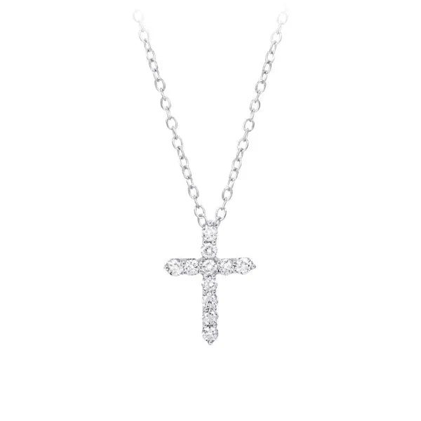 14 Karat White Gold Cross Necklace with Diamonds