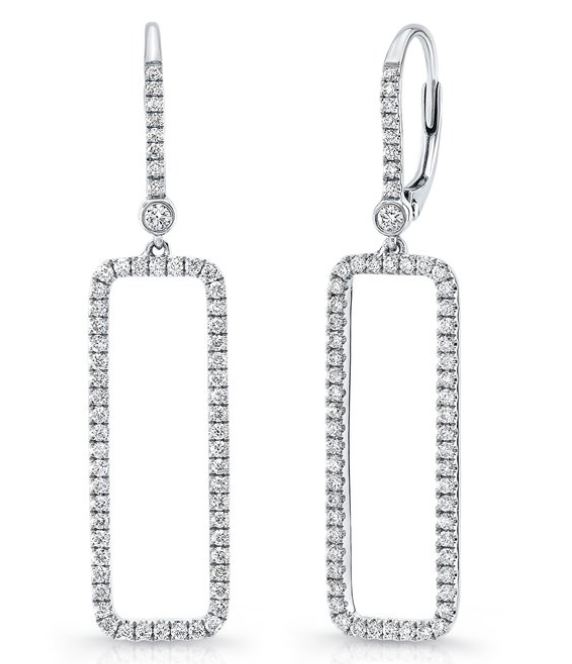 14 Karat White Gold Dangle Earrings with Diamonds and Emeralds