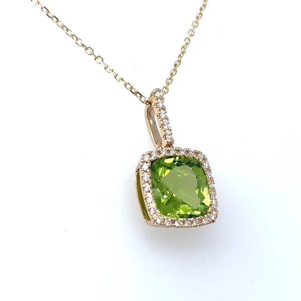 14 Karat Yellow Gold Necklace with Peridot and Diamonds