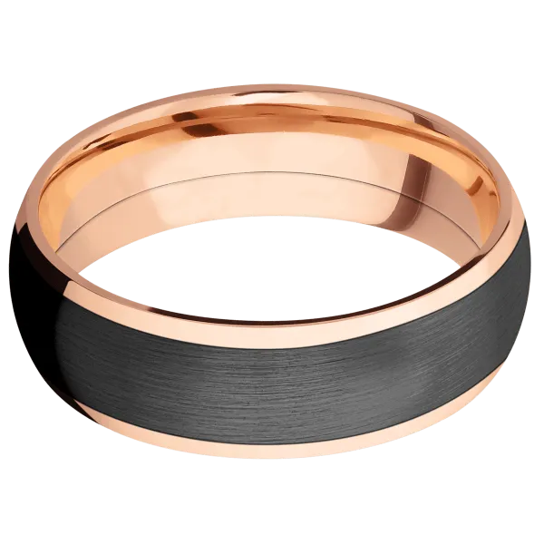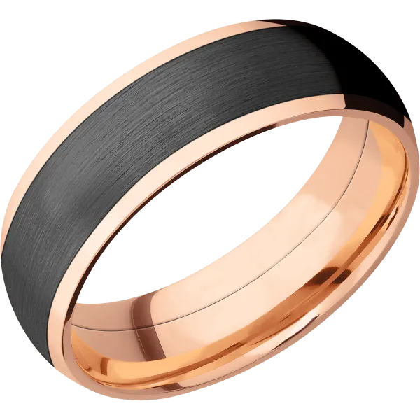 7 mm wide/Domed/14K Rose Gold band with one 5 mm Centered inlay of Zirconium. - $2,580.00 USD