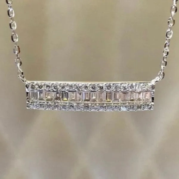 14K White Gold Diamond Bar Necklace