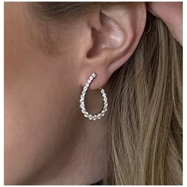 These stunning white gold earrings feature 2.76cttw of diamonds in a loop shape to compliment the ear. Light weight and secure with a double locking earring back.