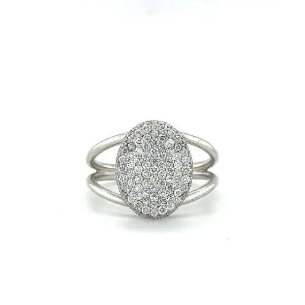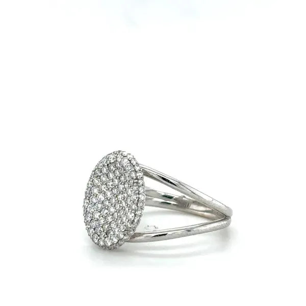 This stunning 18 karat white gold ring is pave set with 0.71 carats of round brilliant diamonds. The ring is size 6.5.