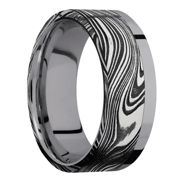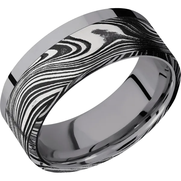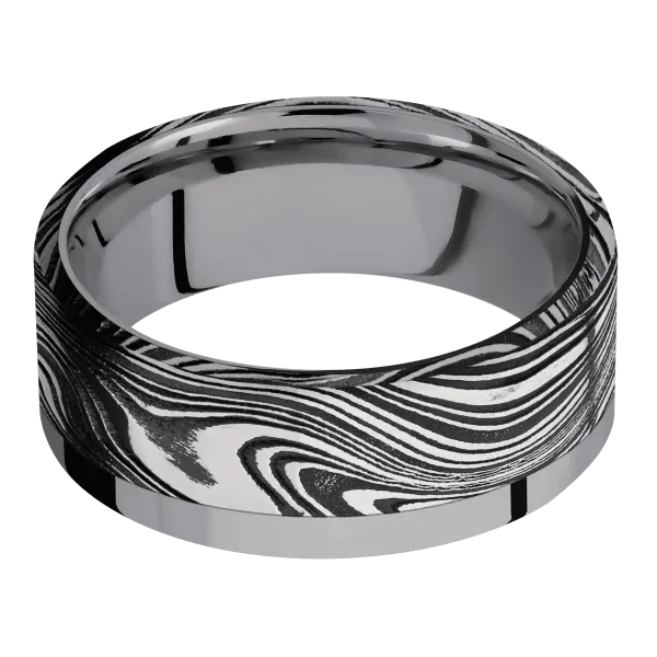 8 mm wide/Flat/Tantalum band with one 6 mm Off Center Edge inlay of Marble.