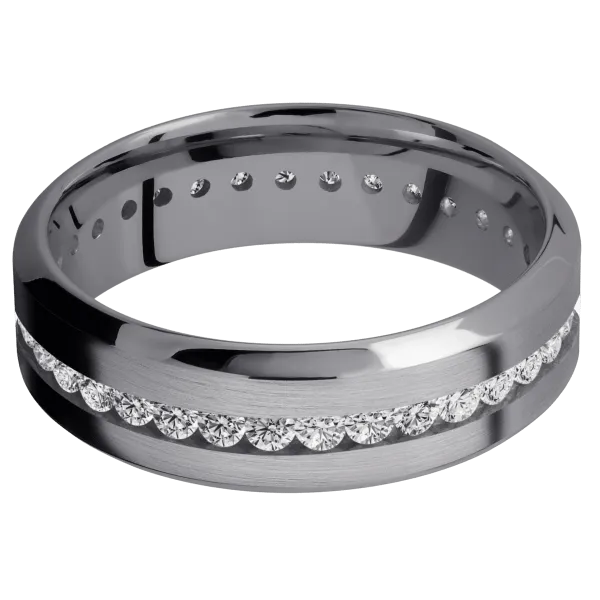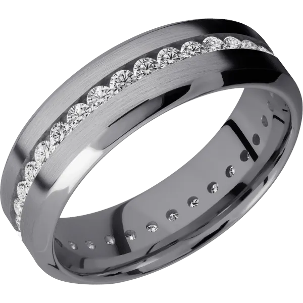 7 mm wide/High Bevel/Tantalum band with an Eternity arrangement of .03 carat Round Lab Grown Diamond stones in a Channel setting. - TCW 0.99ct. - TCW 0.99ct.