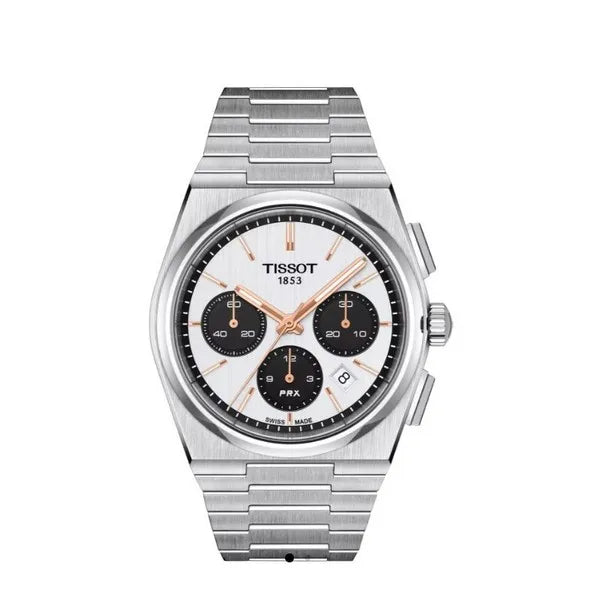 Created for those with an eye for design and packed with twenty-first century features in a Tissot case shape from 1978, the PRX Chrono is a must-have on every watch fan’s wish list. This 42mm satin-finished steel watch follows the PRX’s sleek, angular form, adding to the laid-back 1970s sports watch style with a so-called ‘reverse panda’ dial. The PRX Chrono is powered by the Valjoux A05.H31 caliber, which provides the design with the classic 3, 6 and 9 chronograph dial layout and an extended 60-hour power reserve.
