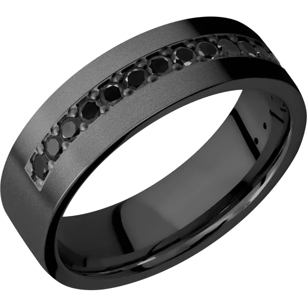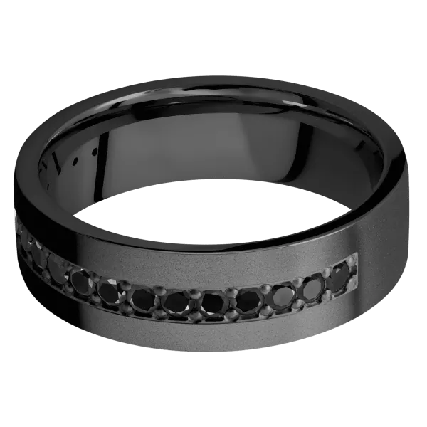 7 mm wide/Flat/Zirconium band with a Half Eternity arrangement of .03 carat Round Black Diamond stones in a Bead setting. - TCW 0.51ct.
