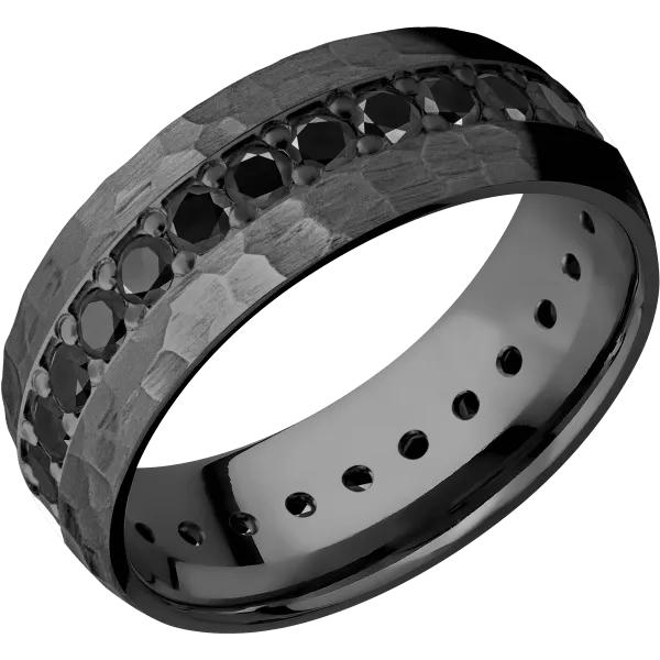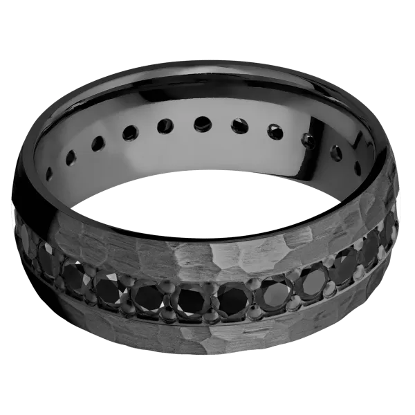 8 mm wide/Domed/Zirconium band with an Eternity arrangement of .05 carat Round Black Diamond stones in a Bead setting. - TCW 1.45ct. - $2,298.00 USD
