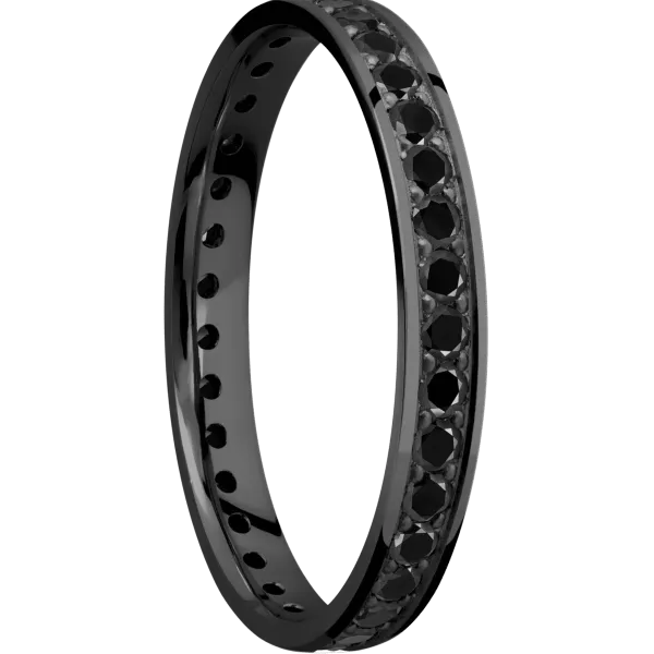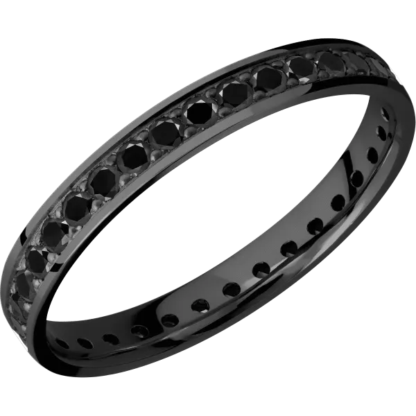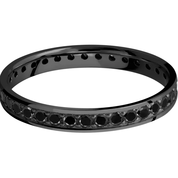 3 mm wide/Flat/Zirconium band with an Eternity arrangement of .03 carat Round Black Diamond stones in a Bead setting. - TCW 1.02ct. - TCW 1.02ct.